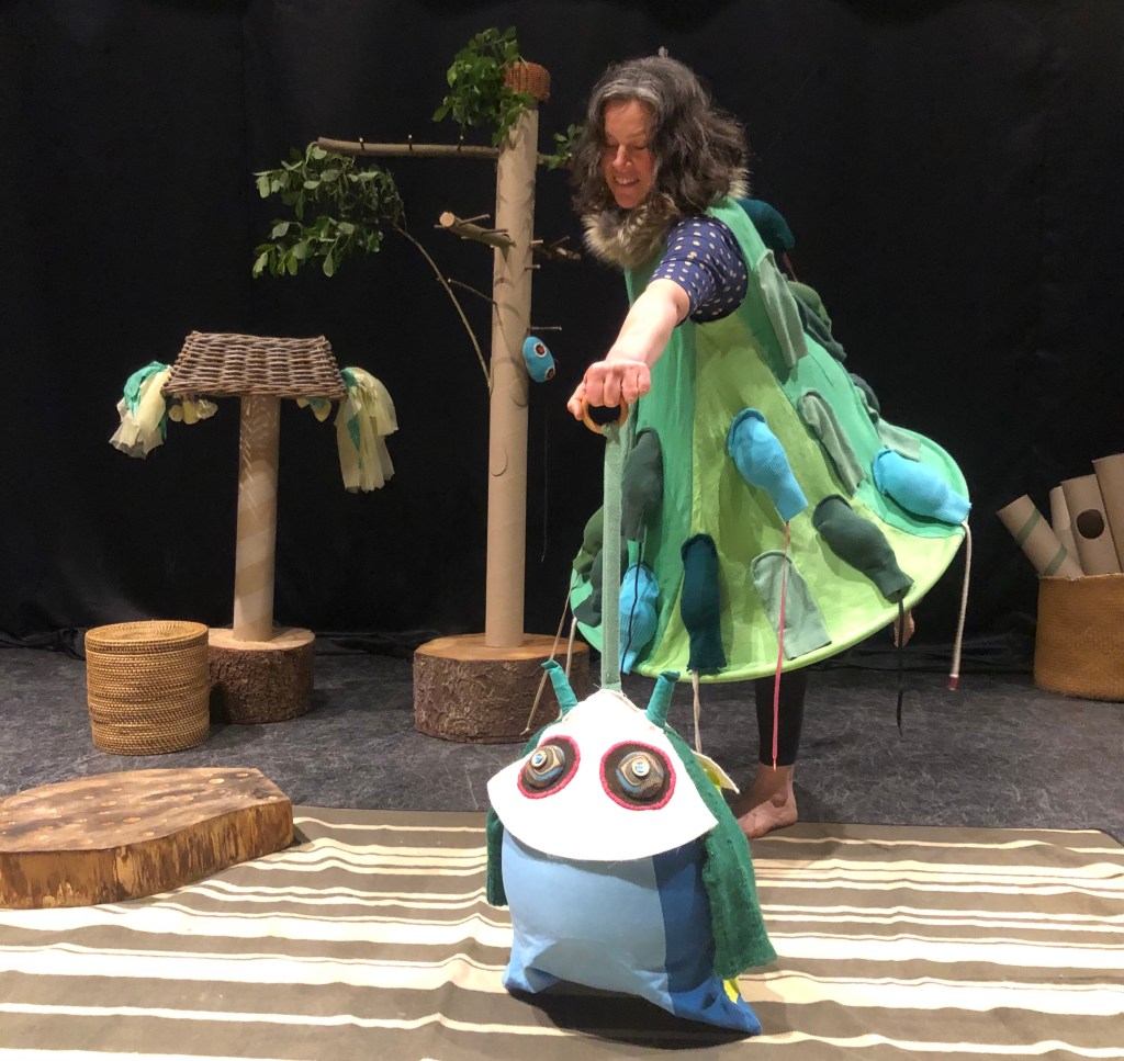 Flutter-By-Bop-Beep is deeply engaging theatre for children. Beautiful and clever use of natural and upcycled materials.